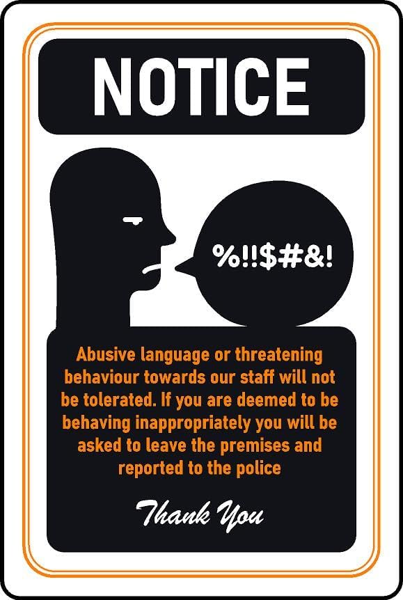 Abusive language or threatening behaviour towards our staff will not be tolerated Safety sign - 1mm flexible Plastic (600mm x 400mm)