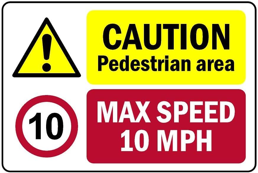 Caution pedestrian area max speed 10 MPH Safety sign - 1mm flexible Plastic (400mm x 300mm)