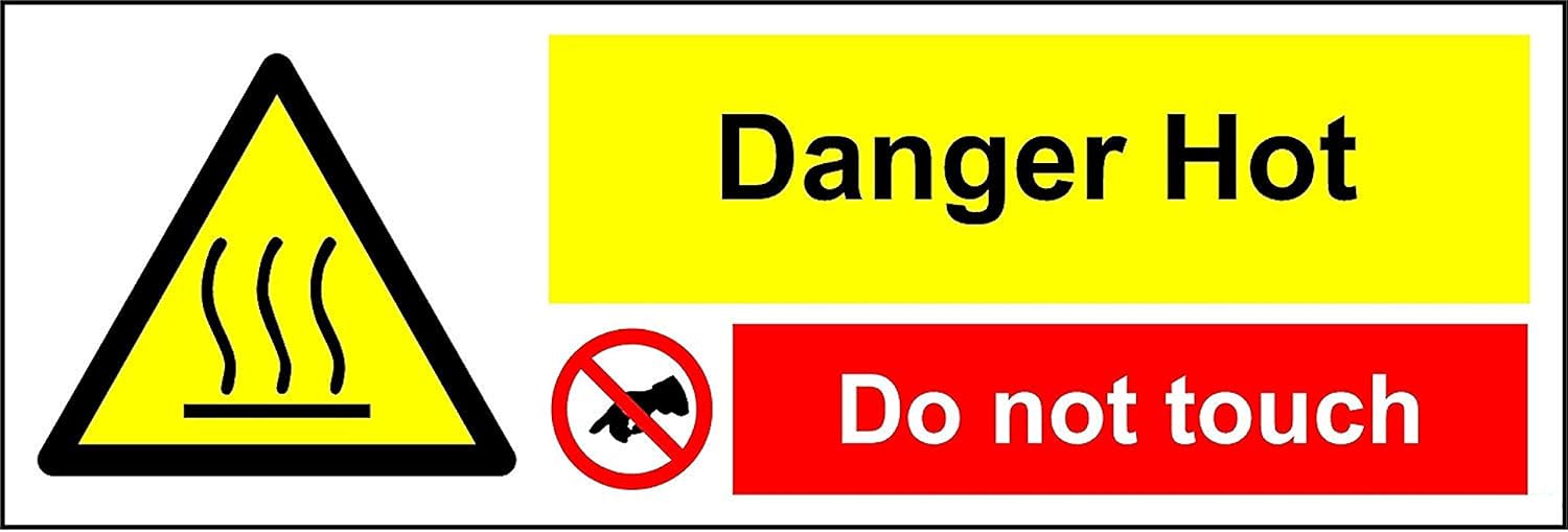 Hot Surface kitchen sign - Danger hot do not touch safety sign - Self adhesive sticker 150mm x 50mm