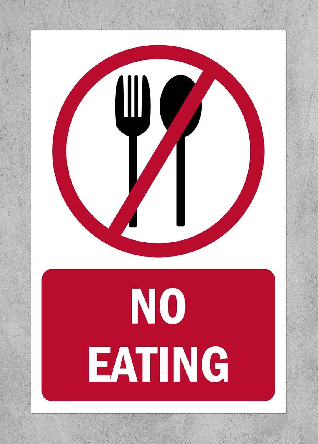 No eating, prohibition sign - Self adhesive sticker (200mm x 150mm)