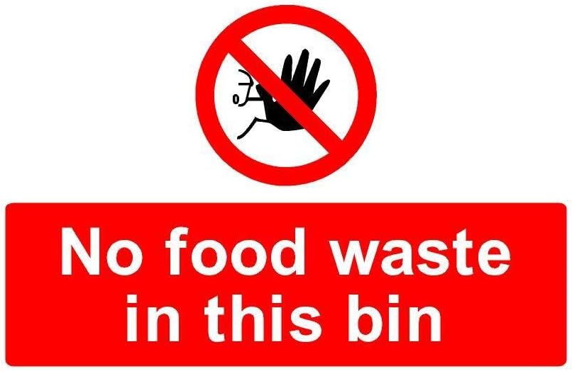 No food waste in this bin prohibition sign - Self adhesive sticker (200mm x 150mm)