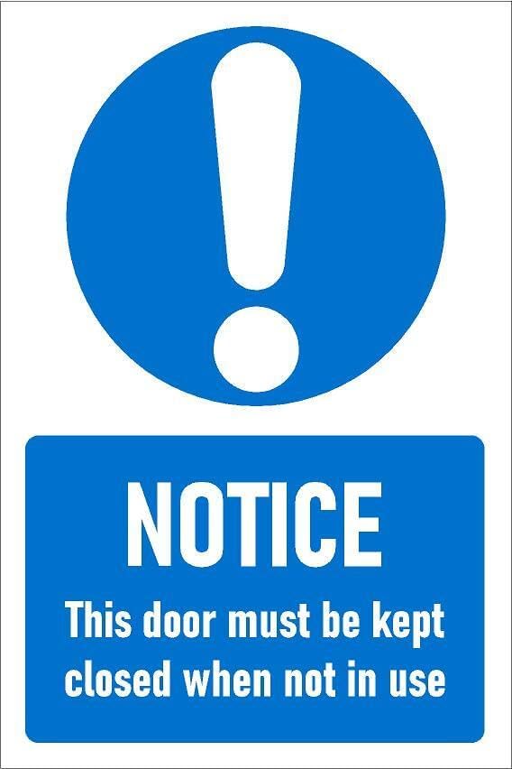 Notice, this door must be kept closed when not in use, safety sign - Self adhesive sticker (200mm x 150mm)