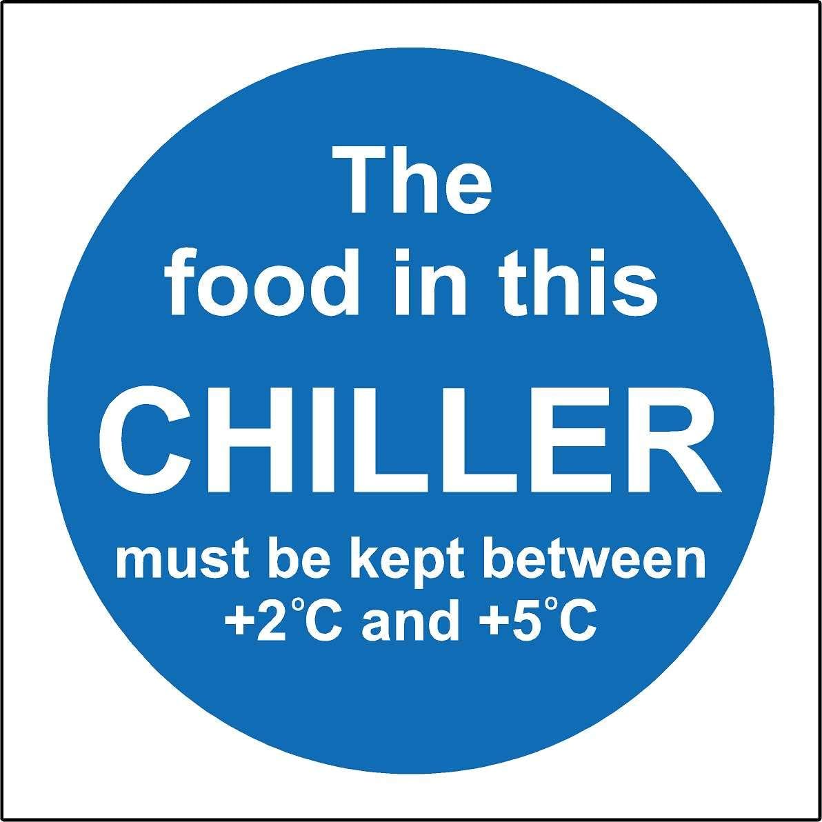 The food in this chiller must be kept between kitchen catering safety sign - 1.2mm Rigid plastic 200mm x 200mm