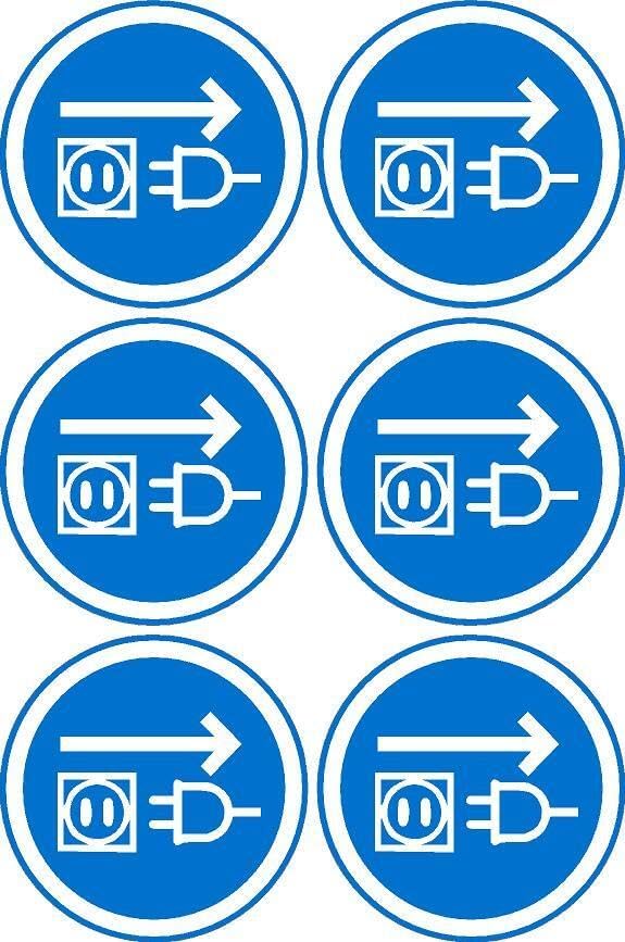 Unplug Socket Sign, 100mm Circle - Pack of 6 Stickers on A4 Sheet