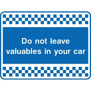 " Do Not Leave Valuables In Your Car" Sign | Free Next Day Delivery | Free Delivery Over £25 | Low Prices | Order Online Today | Made In The UK By KPCM Display