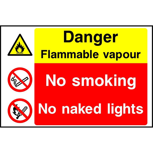 "Danger Flammable Vapour- No Smoking No Naked Lights" Sign | Free Next Day Delivery | Free Delivery Over £25 | Low Prices | Order Online Today | Made In The UK By KPCM Display