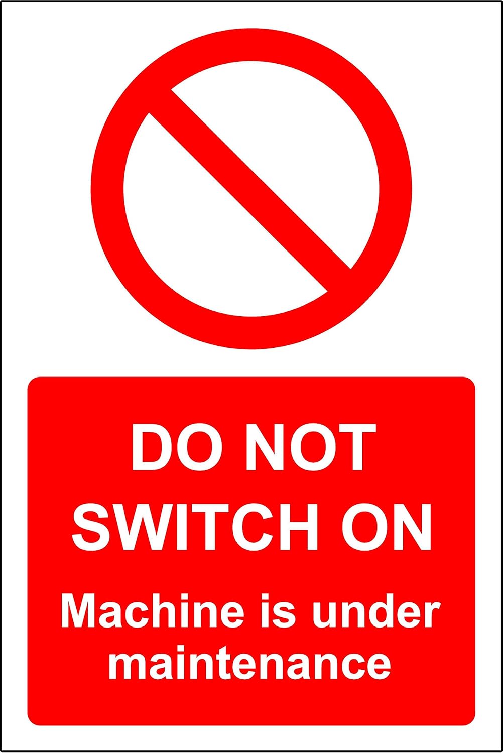 Do not switch on machine is under maintenance Safety sign - 1.2mm Rigid plastic 200mm x 150mm