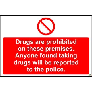 Drugs Are Prohibited On These Premises. Anyone Found Taking Drugs Will Be Reported To The Police Sign | Free Next Day Delivery | Free Delivery Over £25 | Low Prices | Order Online Today | Made In The UK By KPCM Display