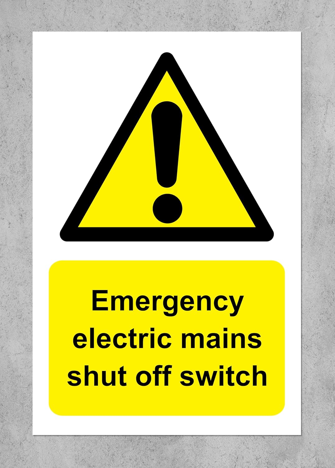Emergency electric mains shut off switch safety sign - Self adhesive sticker (200mm x 150mm)