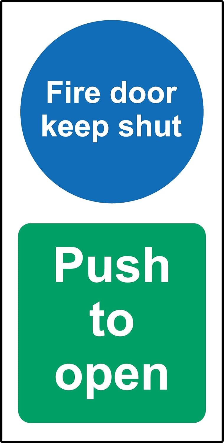 Fire door keep shut - Push to open Safety sign - Self adhesive sticker 200mm x 100mm