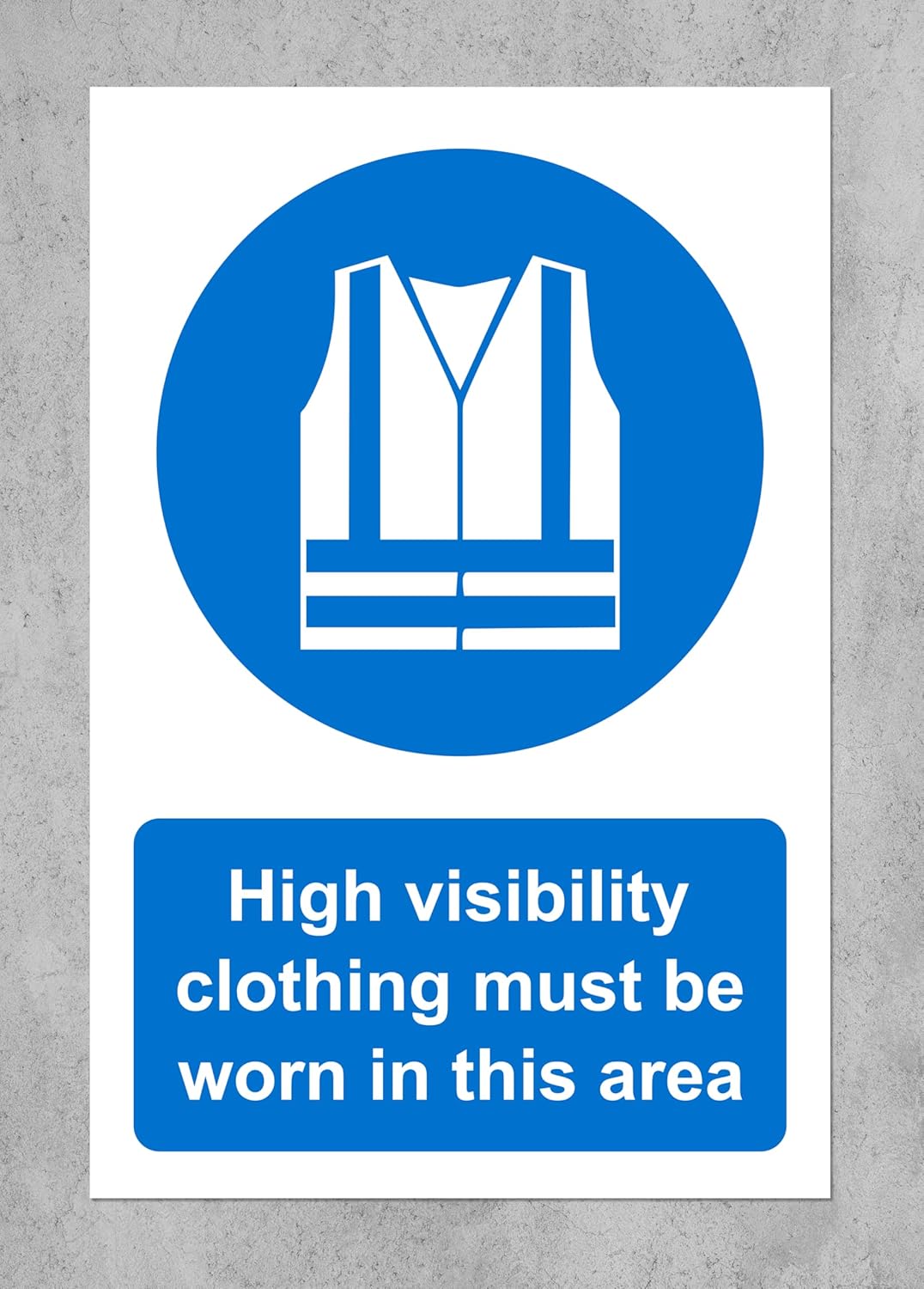 High visibility clothing must be worn in this area safety sign - 1.2mm rigid plastic 300mm x 200mm