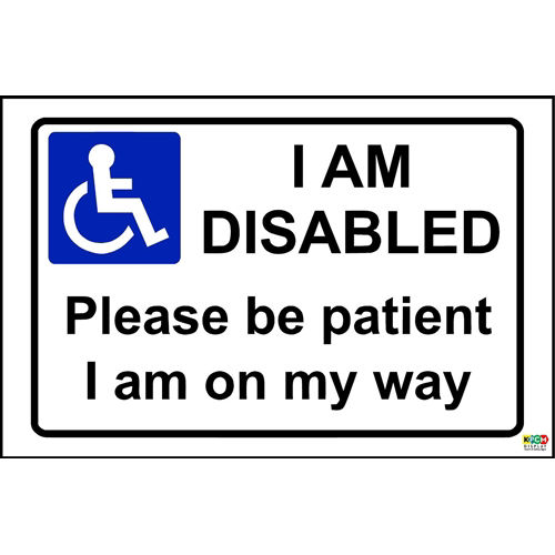 I Am Disabled Please Be Patient Sticker | Free Next Day Delivery | Free Delivery Over £25 | Low Prices | Order Online Today | Made In The UK By KPCM Display
