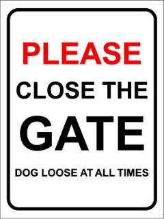 Please Close the Gate Dog Loose At All Times | Free Next Day Delivery | Free Delivery Over £25 | Low Prices | Order Online Today | Made In The UK By KPCM Display