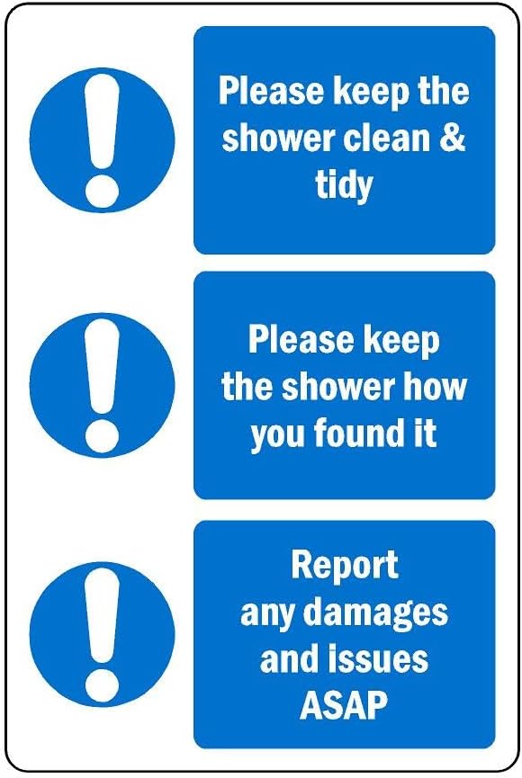 Please keep the shower clean and tidy safety sign - 1mm flexible Plastic (300mm x 200mm)