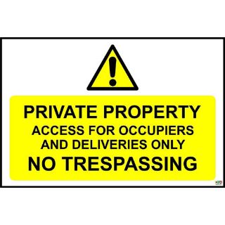 Private Property Access For Occupiers & Deliveries Only No Trespassing Sign