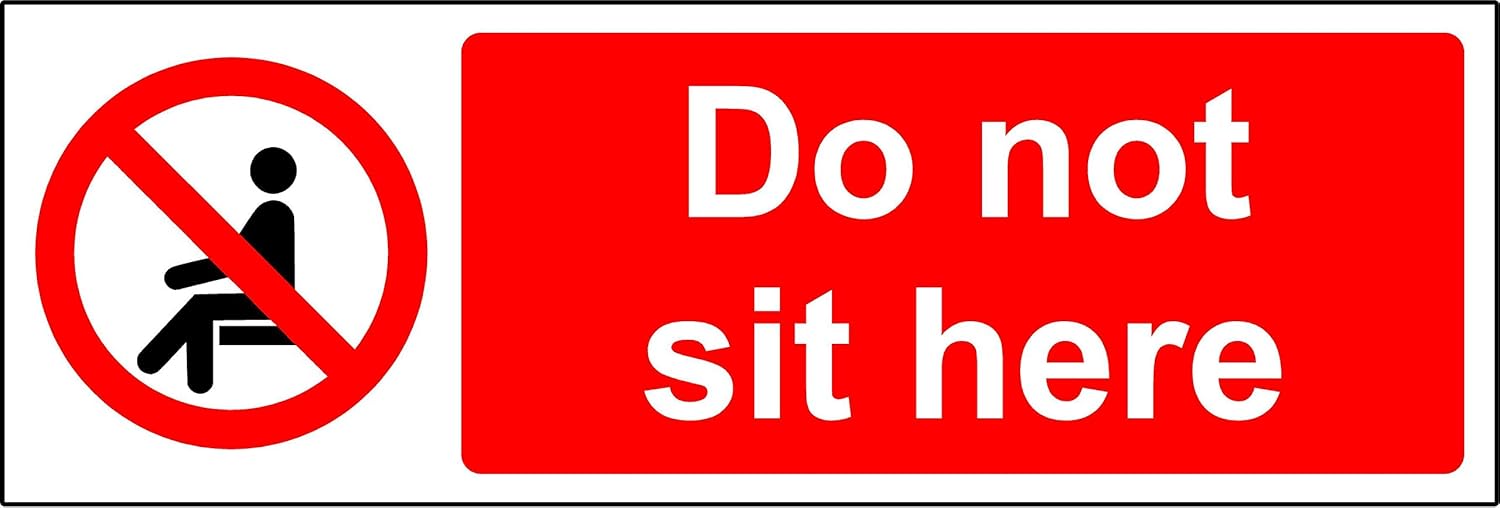 Prohibition signs Do not sit here Safety sign - Self adhesive sticker 150mm x 50mm