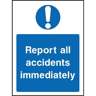 "Report All Accidents Immediately" Sign | Free Next Day Delivery | Free Delivery Over £25 | Low Prices | Order Online Today | Made In The UK By KPCM Display