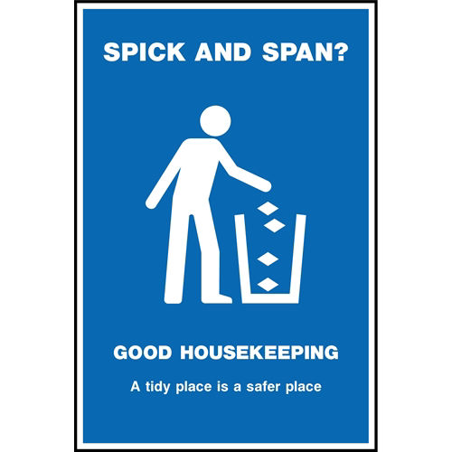 "Spick And Span- Good Housekeeping- A Tidy Place Is A Safer Place" Sign | Free Next Day Delivery | Free Delivery Over £25 | Low Prices | Order Online Today | Made In The UK By KPCM Display