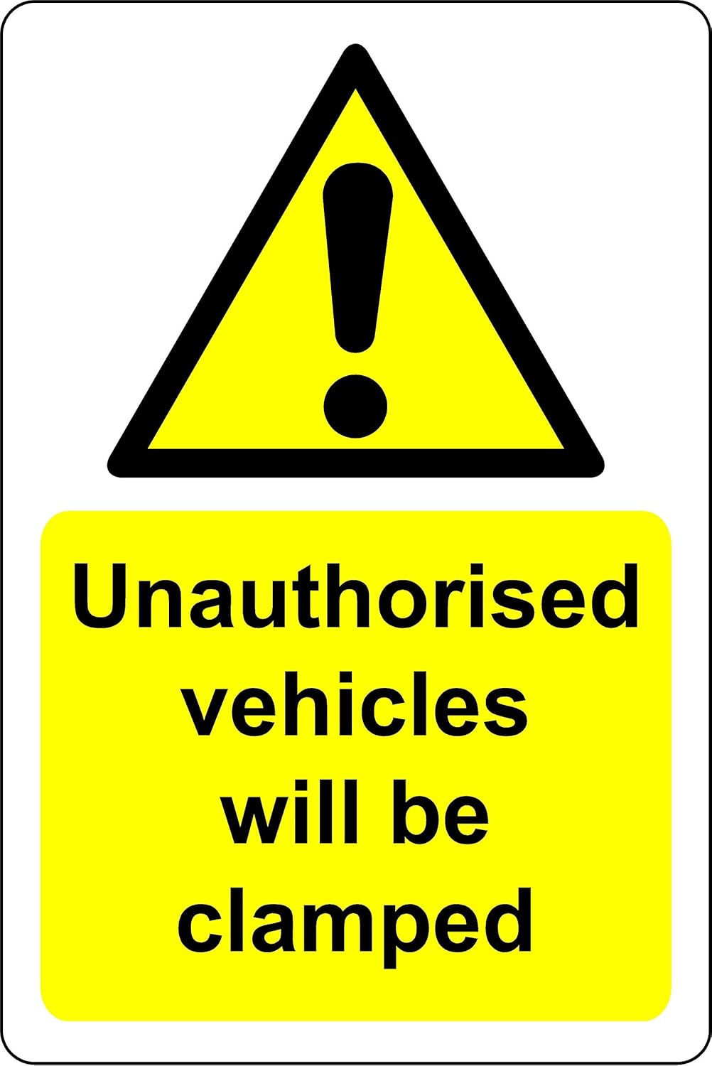 Unauthorised vehicle will be clamped Safety sign - 1.2mm Rigid plastic 300mm x 200mm