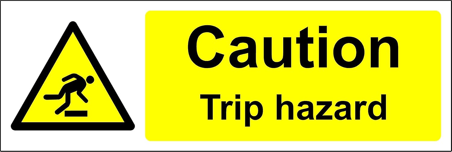 Warning Caution Trip Hazard Safety Sign - Self Adhesive Sticker 300mm x 100mm
