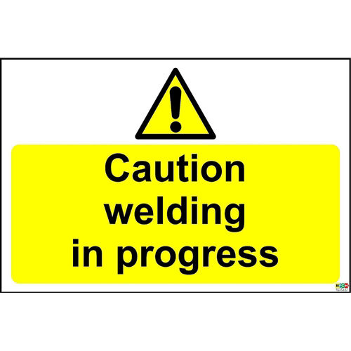 Warning Caution Welding In Progress Safety Sign | Free Next Day Delivery | Free Delivery Over £25 | Low Prices | Order Online Today | Made In The UK By KPCM Display