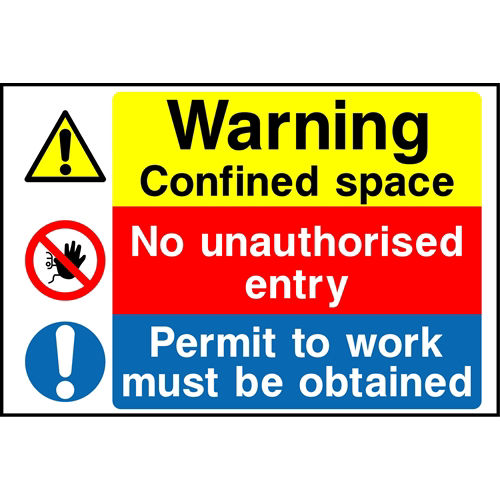 "Warning Confined Space- No Authorised Entry-Permit To Work Must Be Obtained" Sign | Free Next Day Delivery | Free Delivery Over £25 | Low Prices | Order Online Today | Made In The UK By KPCM Display