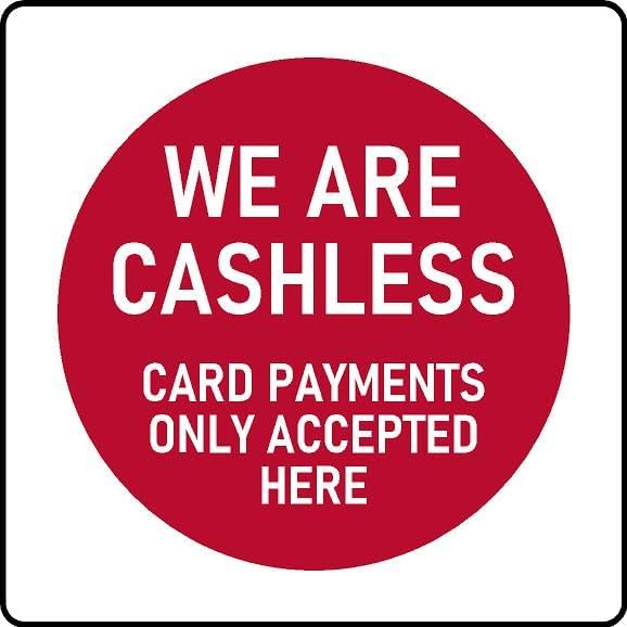 We are cashless Card payments only accepted here sign - Self adhesive sticker (400mm x 400mm)